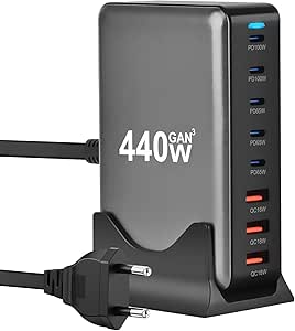LPNHE924985888 – 440W Ładowarka USB C, 8 portów multiple GaN ładowarka ścienne z 5 USB-C i 3 USB-A, Szybka stacja ładowania adapter kompatybilny z MacBook Pro/Air Laptop, iPhone, iPad Pro, Galaxy, SteamDeck – A528