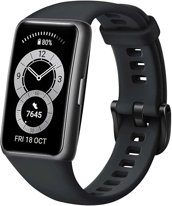 LPNHE925017956 – HUAWEI Band 6, 1,47 calowy FULLVIEW wyświetlacz OLED, 96 trybów treningowych, do 2 tygodni czasu pracy baterii, monitorowanie zdrowia, 5ATM, czujnik SpO2, pomiar częstotliwości serca, kolor grafitowy – C382