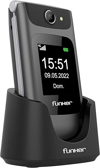 LPNHE925861841 – Telefon Funker C250 Comfort 4G, Telefon 4G VoLTE dla seniorów, duże przyciski i klawisze, łatwy w obsłudze, przycisk SOS, USB-C, 3 szybkie numery, bateria 1450mAH, ładowarka stojąca, tytan – A42