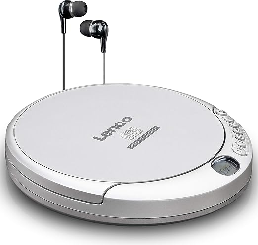LPNHE925994403 – Lenco CD-201 – Przenośny odtwarzacz CD typu Walkman – Diskman – CD Walkman – Funkcja MP3 – Antishock – Z słuchawkami i kablem do ładowania mikro USB – Srebrny – E518