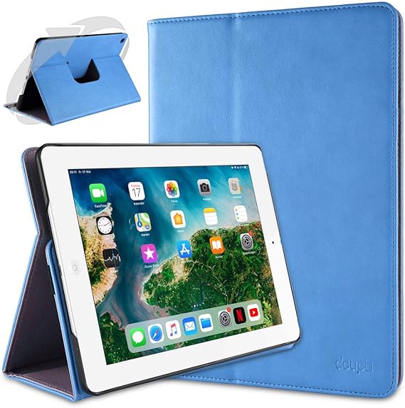 LPNHE926632860 – Obrotowe etui na iPad 2 3 4, luksusowe etui 360 stopni Smart z imitacji skóry z pokrowcem i futerałem, niebieskie – C393