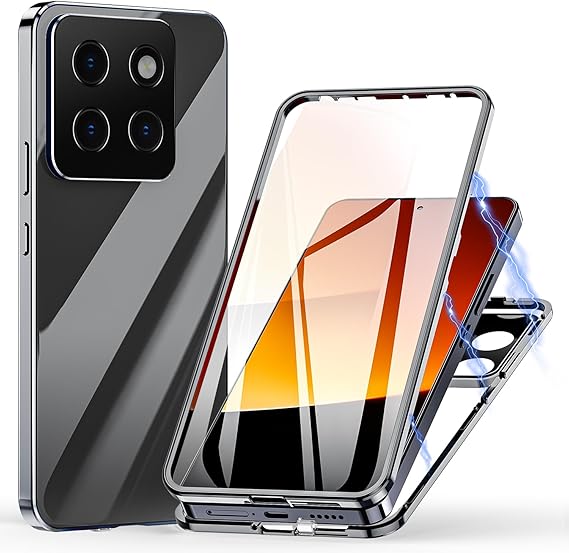LPNHE926753537 – Pokrowiec na Xiaomi Mi 14, magnetyczne etui na telefon z ochroną 360 stopni, aluminiowa rama z hartowanym szkłem, mocne magnesy, metalowa klapka – srebrna – C846
