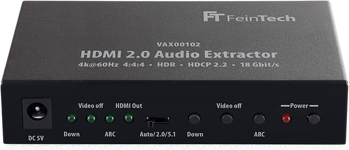LPNHE927064449 – FeinTech VAX00102 HDMI Audio Extractor 4K 60Hz, splitter dźwięku HDMI na optyczny (SPDIF/Toslink), Coaxial i Cinch, obsługuje HDMI ARC, HDR, Dolby Vision, 5.1, PCM Stereo – A473