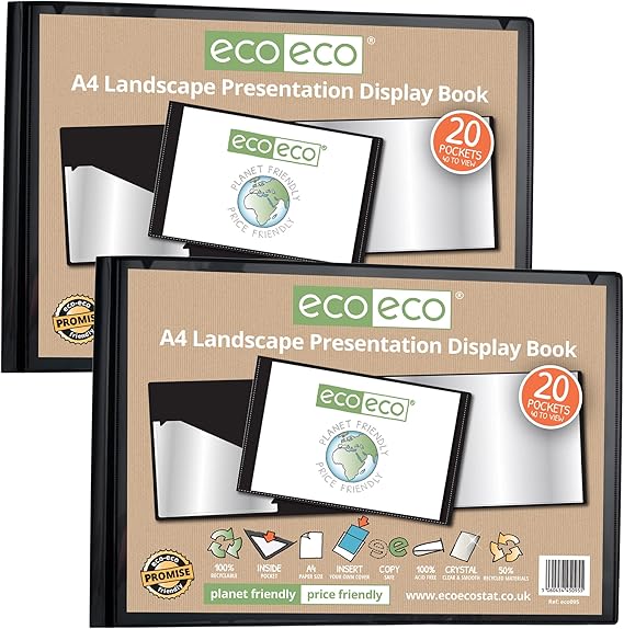 LPNHE928493728 – eco-eco Eco095x2 Sichtbook z 20 kieszonkami, A4, 50% zrecyklowane, 20 kieszonkami, Czarny – A387