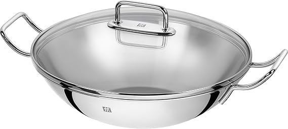 LPNHE945971437 – Patel ZWILLING Wok 40992-332-0, z pokrywką ze szkła i wyjmowanym wkładem do grillowania, odpowiedni do indukcji, Ø 32 cm, stal nierdzewna, Plus, srebrny – E352