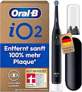 LPNHE964523205 – Oral-B iO 2 Elektryczna szczoteczka do zębów Oral B, 1 Głowica wymienna, Szczoteczka, Pokrowiec podróżny, Podstawa na głowice, Delikatny dla dziąseł, Skuteczny w usuwaniu płytki nazębnej, Czujnik nacisku, Czarny – K756