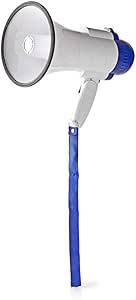 LPNHK288567718 – Nedis Megafono, z paskiem transportowym i wbudowanym mikrofonem, funkcją syreny i nagrywania, zasięg transmisji 250 m, maksymalna kontrola głośności: 150 dB, niebiesko-biały – B607