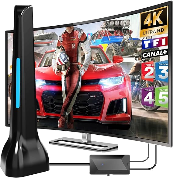 LPNHK364564052 – Telewizja antenowa, Potężna Wewnętrzna Antena TV 4K z Wzmacniaczem, Antena TV DVB-T/DVB-T2 Wewnętrzna i Zewnętrzna, obsługująca VHF/UHF/FM dla Fire TV oraz wszystkich starych telewizorów. – A400