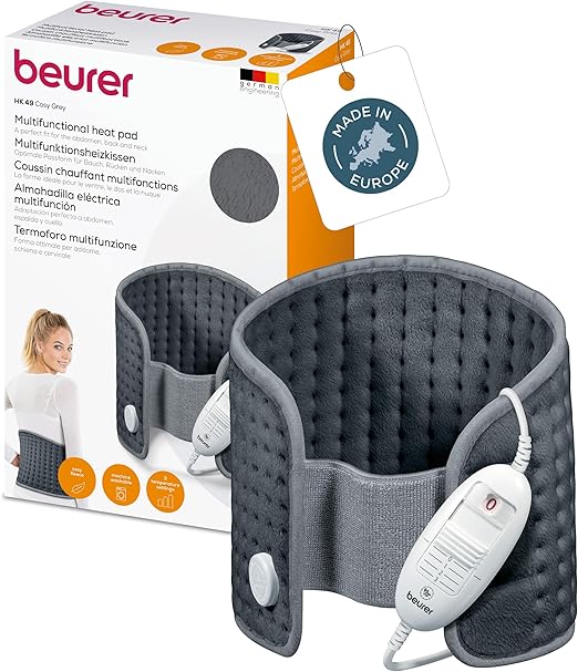 LPNHK364623585 – Beurer HK 49 Przytulna poduszka grzewcza, do stosowania na brzuch i plecy, z gumką i zapięciem na rzepy, automatyczne wyłączenie, można prać w pralce szary – K45
