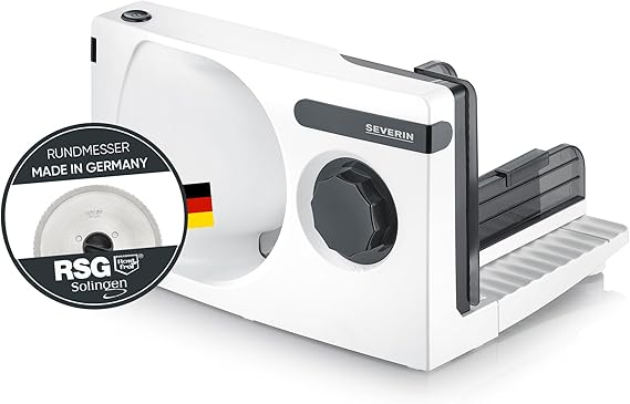 LPNHK365227556 – SEVERIN Krajalnica do chleba, wędlin lub sera, maszyna do krojenia chleba z ciągłą regulacją grubości krojenia, krojarka do wędlin z ochraniaczem palców, biało-czarna, AS 3912 – A457