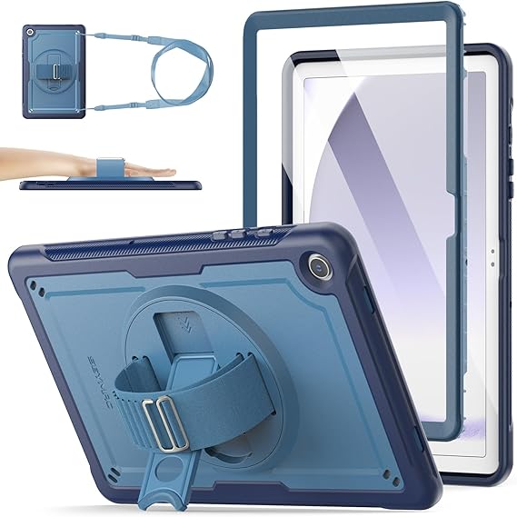 LPNHK366808367 – Etui SEYMAC do Samsung Galaxy Tab A9 Plus / A9+ 11 cali 2023, Mocne etui ochronne z ochroną ekranu, uchwytem na długopis, stojakiem / paskiem do ręki i na ramię, w kolorze granatowym. – A50