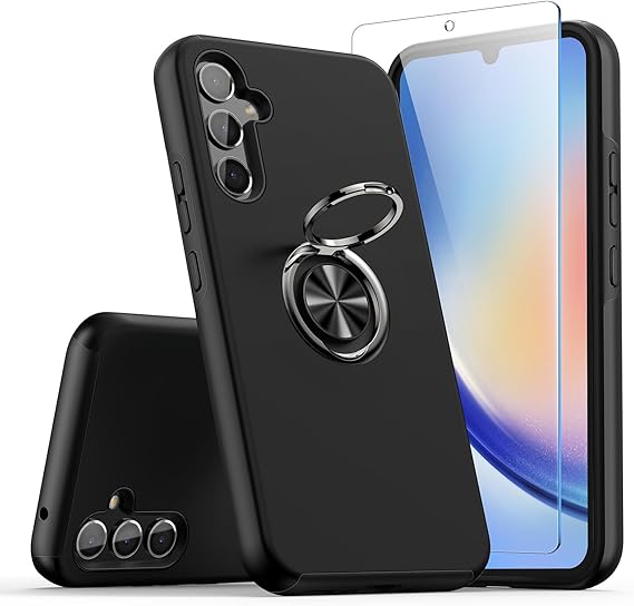 LPNHK368897218 – KRAFTCARE Etui ochronne do Samsung Galaxy A34 5G z 1 folią ochronną na ekran ze szkła pancernego – Z wbudowanym pierścieniem 360° – Magnetyczny – Odporny na wstrząsy – Do Samsung A34 5G – Czarny – A318