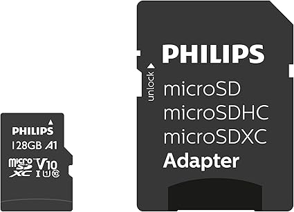 LPNHK370836615 – Karta Philips Ultra Speed microSDXC 128 GB + adapter SD UHS-I U1, prędkość odczytu do 80 MB/s, A1 Fast App Performance, V10, karta pamięci do smartfonów, tabletów, komputerów, czytnika kart, wideo Full HD – A872