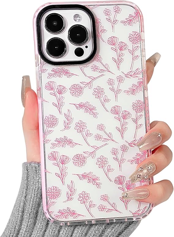 LPNRP001887819 – NITITOP Kompatybilny z etui iPhone 16 Pro Max Piękny Kwiatowy Motyw Jasny Cienki Pokrowiec dla Kobiet Dziewczynki Kryształowy Antyuderzeniowy Miękki TPU Antyżółty Etui Ochronne na Telefon – Przezroczysty Różowy – B433