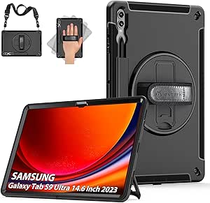 - LPNRP016415754 – Etui do Samsung Galaxy Tab S10 Ultra/S9 Ultra/S8 Ultra 14,6 cala 2024/2023/2022: Miesherk 3-warstwowe wytrzymałe etui odporne na uderzenia etui uchwyt na długopis-obracany o 360° stojak-pasek na rękę, Galaxy Tab S9 Ultra 14.6″ 2023 Czarny S9 – C679