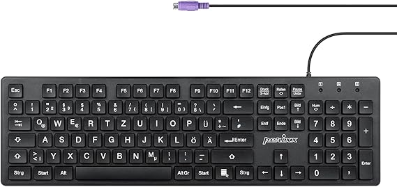 LPNRP035101029 – Perixx Periboard-117 Przewodowa klawiatura PS2, wygodne pisanie, zaokrąglone klawisze, układ QWERTZ, czarny. – E154