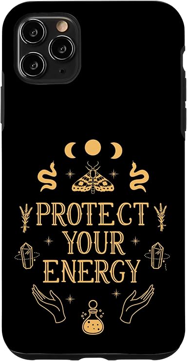 LPNRP039950948 – Pokrowiec na iPhone 11 Pro Max z czarnoksiężnym napisem Chron swoją energię Gotyk Wicca Pogańska Księżyc – A188