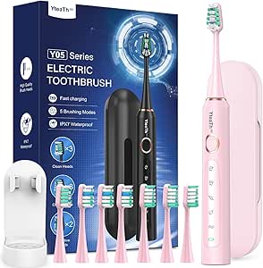 LPNHe000581683 - Szczoteczka do zębów elektryczna obrotowa dla dorosłych - Szczoteczki do zębów obrotowe z 3 intensywnościami 5 trybami, 8 głowicami szczoteczki, wodoszczelna IPX7, elektryczna szczoteczka do zębów podróżna, czarna - K527